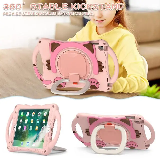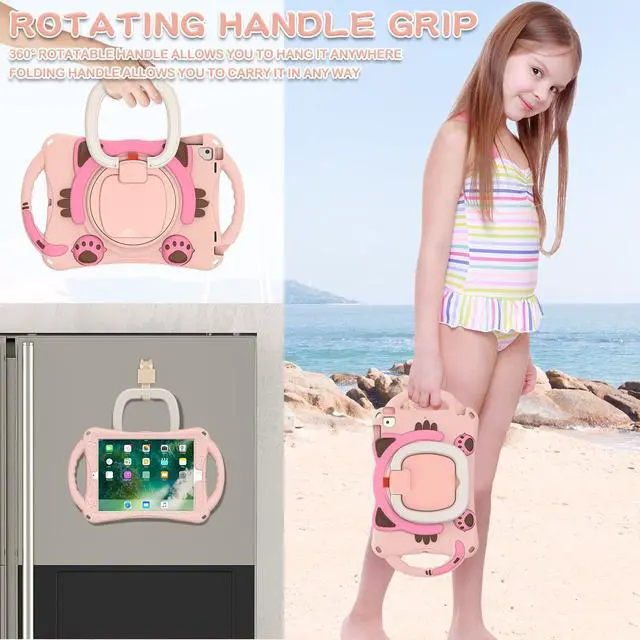 Released (Model: A1673/A1674/A1675); NOT compatible with any other model device. (Screen Protector and Apple Pencil NOT Included) ^^ [Full Body 3-Layer Protection Design] Providing full body protection prevent from drops, shocks, bumps, scratches and dirt. No worry your Ipad would slip out of your kids' hands and break. Full access to all ports, buttons and cameras without removing the case. ^^ [Amazing Mul-tifunction Handle-Kickstand] The 360 Degree rotating Kickstand provides multi-angle viewing, offering a pretty convenient use experience for film watching, working and typing. The stand is stable enough on several different surface. Open as a comfortable handle for gripping and carrying. ^^ [Removable & Adjustable Carrying Strap] Portable Shoulder Strap allows to carry your Ipad conveniently when you are at work, on a trip or outdoors. You could even hang it behind the head rest of car seat or wherever you want. ^^ [Customer Service] Our Professional Service Team will solve your problems to ensure your complete satisfaction within 24 hours. Please feel free to contact us if you meet any problem such as replacement, refund, strap, installation guide.