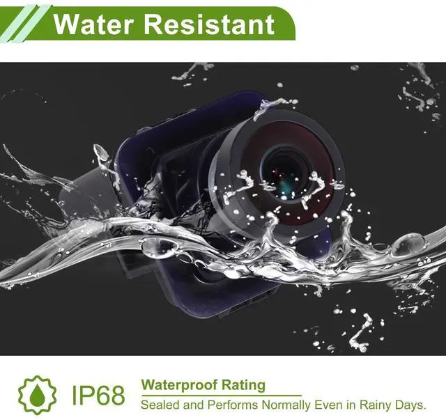 ^^ Specification: With 170 degree wide view detection angle and 1920x1080 camera resolution, it performs normally also as night vision camera, even in the faint light like a dark underground garage. The waterproof rating is IP68 for all weather. So it will not be affected in harsh environments like rainy days.