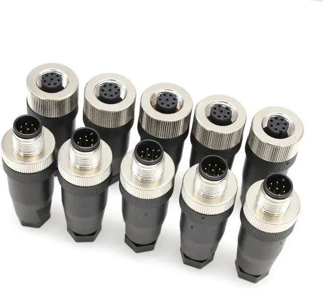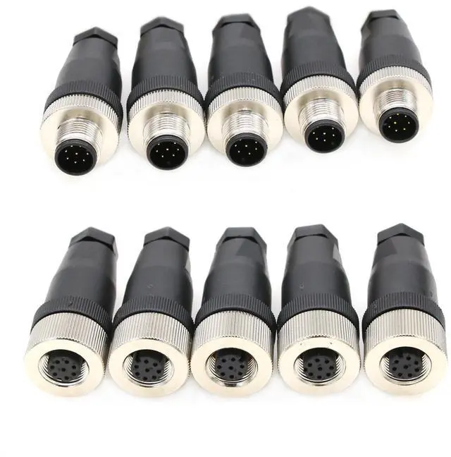 SZRMCC M12 8 Pin Male Female Wire Connector M12 A Code Field Assembly Wireable 12mm Sensor Aviation Connector Industrial Waterproof Plugs Socket 250V 4A (Male+Female, 8Pin Straight 5set)