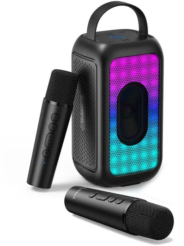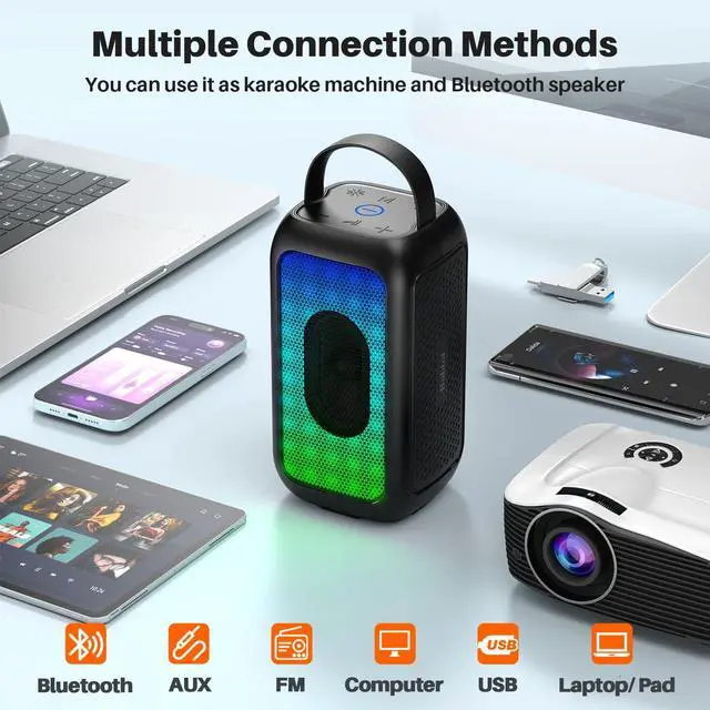 Ambient RGB Light: This wireless speakers with bluetooth has 4 types of LED light modes. It can change with the rhythm of music, or gentle slow flashing, providing the most romantic and vibrant karaoke party atmosphere for you. You can also long-press the LED button to turn off the light. It's an ideal karaoke machine for adults ^^