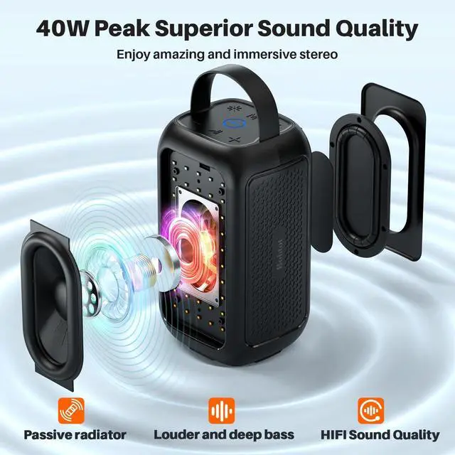 Bluetooth 5.3 Connection: This bluetooth speaker wireless is equipped with bluetooth 5.3, fast connection and up to 100ft range, anti-interference and more stable while playing music. Let you efficiently connect any Bluetooth devices such as laptops, smartphones, Pads ^^