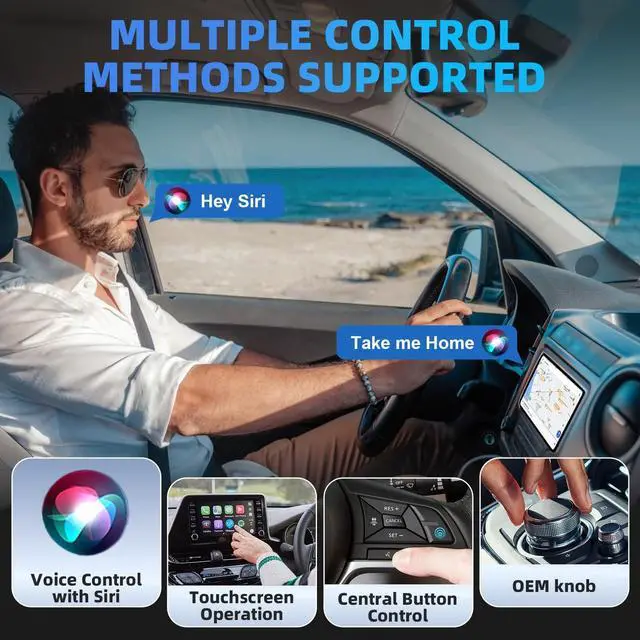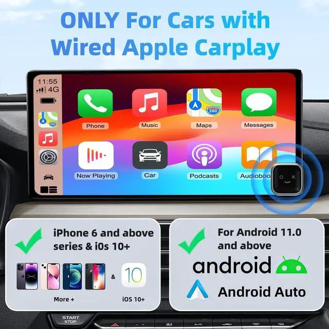 Wireless Connectivity: The wireless CarPlay adapter enables seamless connection between your iPhone or Android device to your cars without tangled cables. You can access to navigation, music, phone calls, and messaging apps directly through the car's display.