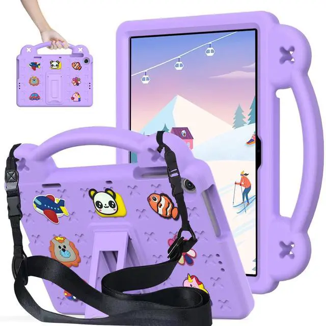 AKABEILA Compatible with Fire HD 8/HD 8 Plus (2020/2022)/Fire HD 8 2024 Tablet Case, Kids Lightweight Shockproof Protective Case with Shoulder Strap & Stand Handle Light Purple