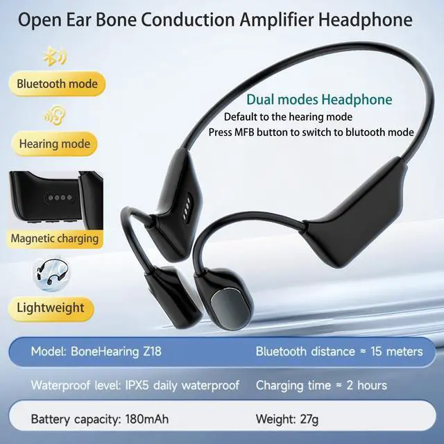 Bluetooth & Hearing modes: Dual-mode headphone, default to hearing mode and short press the MFB button to switch to Bluetooth mode. Features latest 5.3 Bluetooth tech and provide stable connection and fast transmit speed. ^^