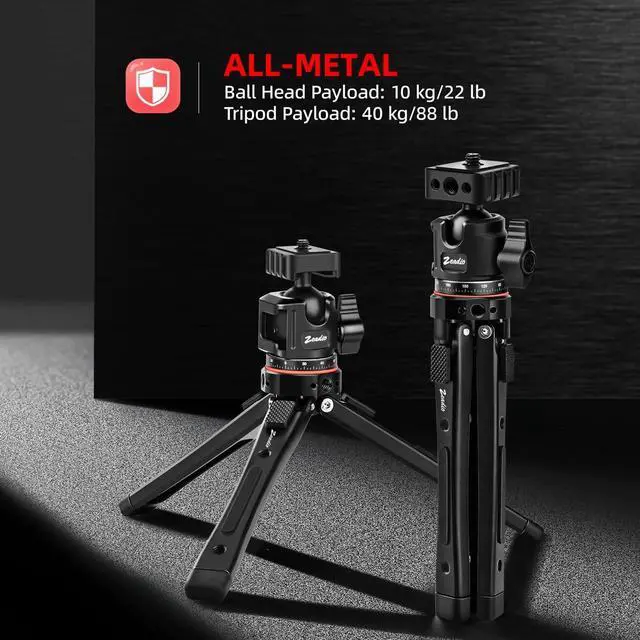 All-Metal Heavy Duty Construction: Made of full metal, the tripod supports up to 40kg load, and the ball head supports up to 10kg, providing reliable strength for professional use. Adjustable Height from 50mm to 138mm: The tripod legs extend to offer variable ground clearance, allowing for low-angle shots or elevated positioning as needed. Rich Expansion