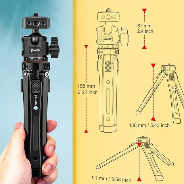 Cold Shoe: Offers flexible shooting angles and includes a cold shoe interface for accessories. This robust travel tripod and camera stand ensures stability for various setups.