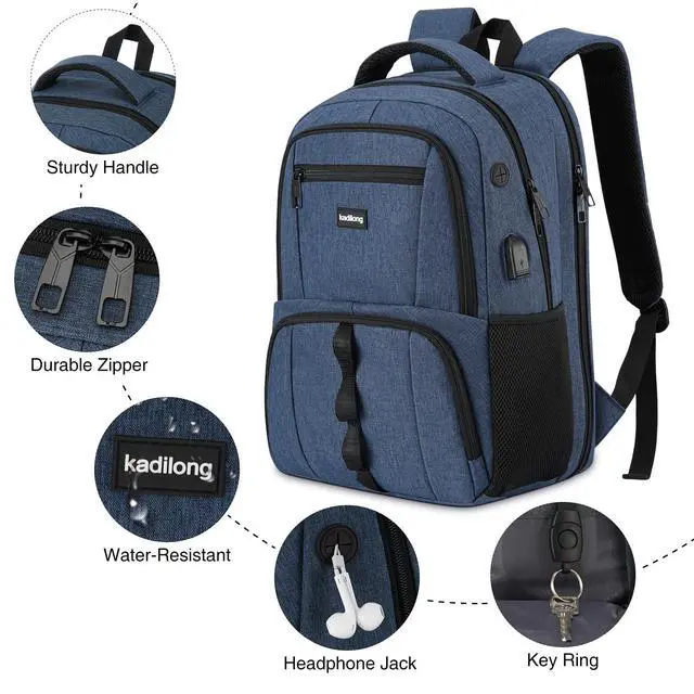 ^^ USB PORT&HEADPHONE HOLE: With built in USB charger and headphone hole design, this laptop backpack offers you a more convenient way to charge your phone and enjoy the music while walking. It's a great tech gift for him and her, daughter and son.