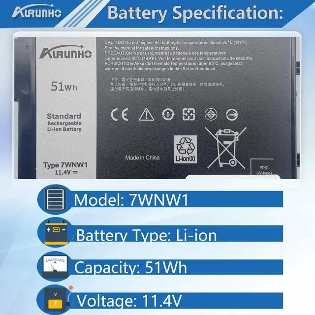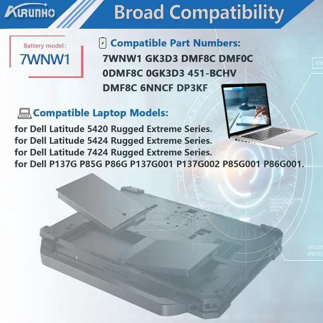 Color: Black. 100% brand New from Manufacturer. ^^ Fits Modelsfor Dell Latitude 7424 5424 5420 Rugged Extreme Series, P137G P85G P86G P137G001 P137G002 P85G001 P86G001. ^^ Compatible P/N 7WNW1 GK3D3 DMF8C DMF0C DMF8C 6NNCF DP3KF 0DMF8C 0GK3D3 451-BCHV. ^^ Security ALL of our battery is CE, FCC, RoHS Certified. And have passed a series tests of short circuit, overheating, and overload protection before shipments for safety. ^^ AURUNHO After-sales We guarantee 30 days money-back and 12-month warranty; 24 x 7 email support. For any battery questions you fell free to contact us via "Your Orders" tab in your account, we will be glad to help you within 24 hours.