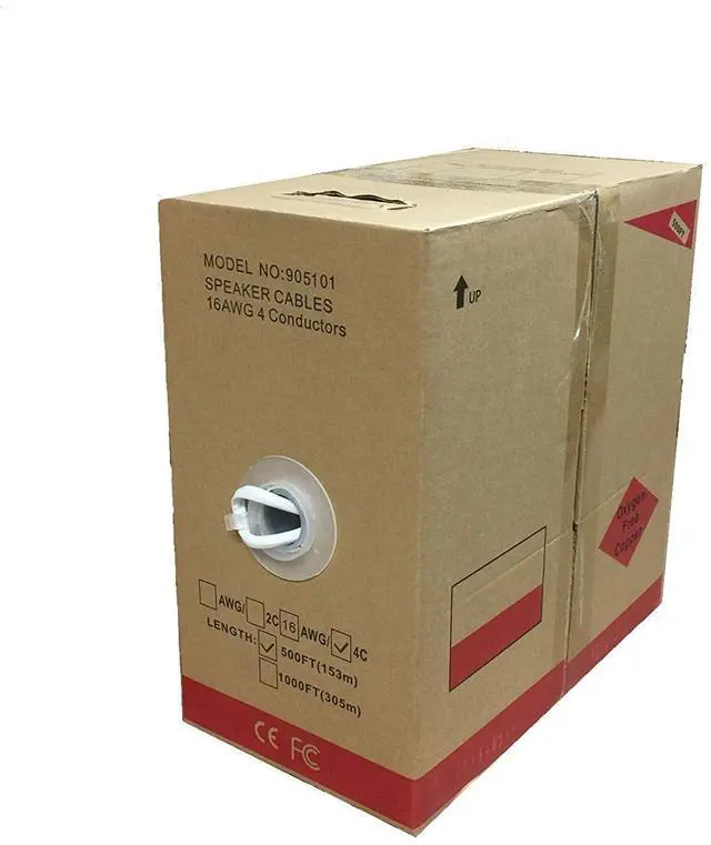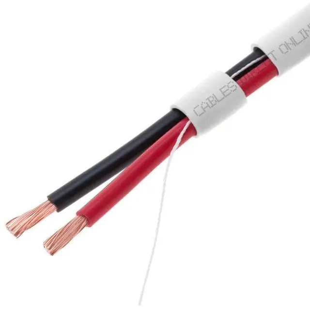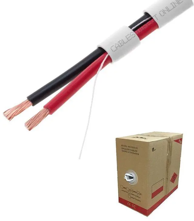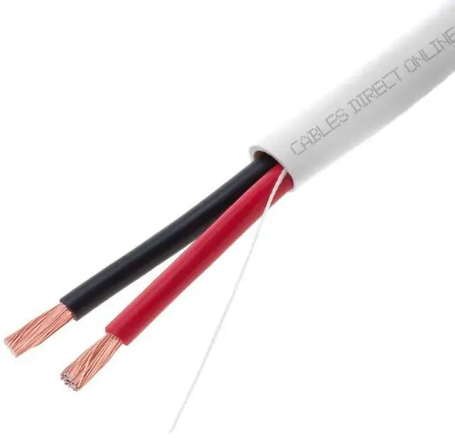 Highest quality 2 conductor speaker wire flexible clear PVC jacket with red stripe polarity alows for fast, easy and accurate installations ^^ 99.99 % Oxygen Free Copper (OFC) Conductors. Compatible with Bare Wire Connectors, Banana Plugs, Spade Tips or Bent Pin Connectors ^^ This pro-grade CL2 rated, speaker wire is an ideal choice for connecting your loud speakers to an AV receiver or amplifier in a 2.1, 5.1, or 7.1 channel home theater system ^^ Heavy gauge conductors are made of solid oxygen-free copper as opposed to copper clad aluminum (CCA) or copper clad steel (CCS) to resist corrosion and deliver pristine sound ^^ Tough, yet flexible white insulated jacket is market with a stripe on one side for polarity and is marked at 2FT intervals for easy installation.