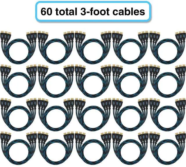 60-Pack of 3 ft HDMI Cables, Premium Braided Cord, High Speed with Ethernet, Supports HDMI 2.0 b 4K 60hz HDR and ARC, Twisted Veins"
