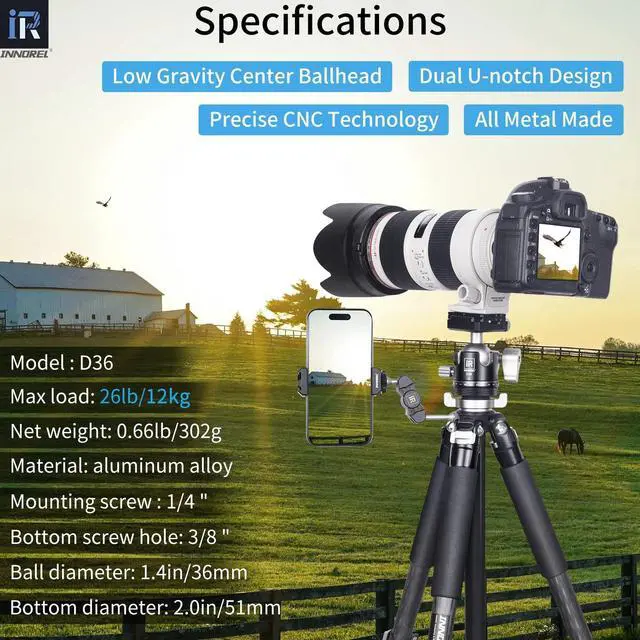 ^^ WIDE COMPATIBILITY & ANTI-LOST DESIGN1/4" screw of quick release plate and 3/8" screw hole in the bottom fit most photography equipments. It adopts anti-lost design, the main knobs of this ball head can not be screwed off, avoids the risk of losing knobs. ^^ PACKAGEThere is a product box, a D36 ballhead and a ball head bag in the package.