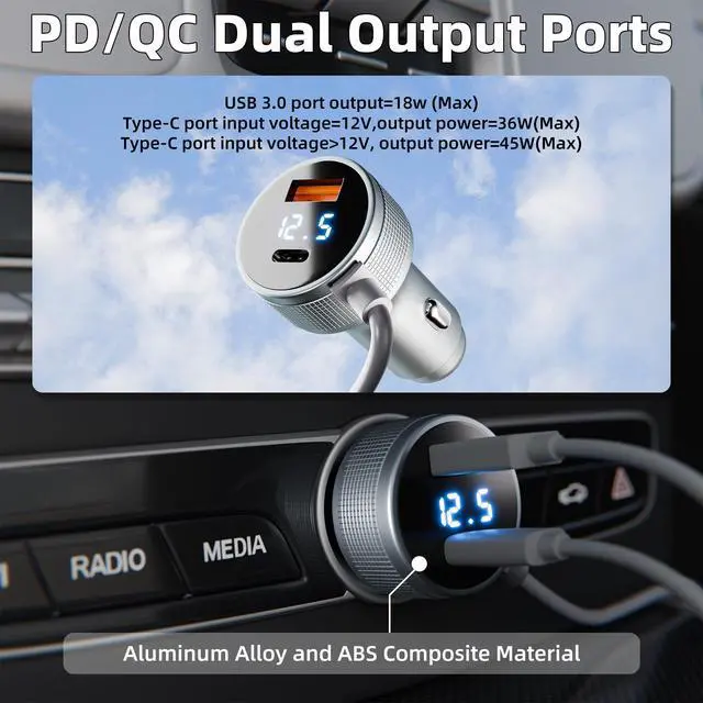 Flash Charging: This Starlink Mini Car Charger has excellent durability and efficient power capacity, supporting dual port independent output, USB C port supports 45W super fast charging, USB A port supports QC 3.0 fast charging max 18W, two ports total max output 63W.