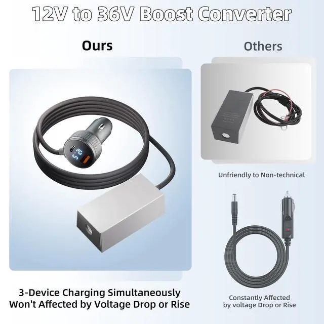 Starlink Mini Step Up Converter: The Starlink Mini cable 12V adapter contains a 12V-24V to 30V Step Up Converter, even when voltage drop below 11V, this can still power Starlink Mini efficiently, so no worry about voltage drop or rise. ^^ PD/QC Dual