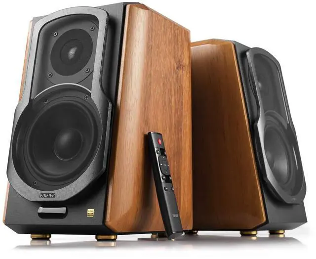 Frequency response: 45 Hz to 40 kHz ^^ Bluetooth v 5.0 with Qualcomm aptX HD decoding for pairing capability to stream audio playback from compatible devices ^^ Ideal general-usage bookshelf system for cell phones, tablets, laptops, TVs, Blu-ray players, CD players, DVD players, etc. ^^ 5.5 -in. aluminum alloy midrange bass and 1-in. advanced titanium dome tweeter in each speaker