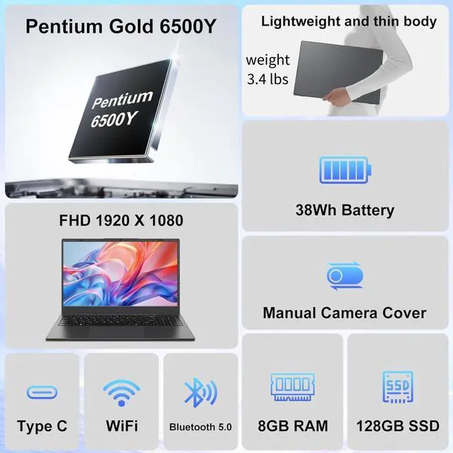Reliable Performance & Silent Operation: Powered by the Pentium 6500Y processor (boosting up to 3.4GH z), this laptop computer delivers smooth performance for web browsing, HD streaming, document editing, and everyday multitasking. Ideal for students, business, and everyday entertainment. The quiet design keeps operation below 20dB, perfect for quiet environments like libraries or work. ^^ 1080P IPS Display and