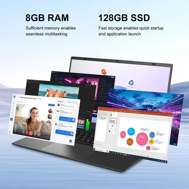 Support: The work laptop is equipped with multiple interfaces, including USB 3.2, HDMI, Type C, 3.5 mm headphone jack, TF jack, Kensington Lock Slot. The computers laptops are equippe with Wi-Fi 5 and Bluetooth 5.0, ensuring fast wireless connection. Business laptops with HDMI and Type C supports 4K display output, making external large-screen work more efficient.