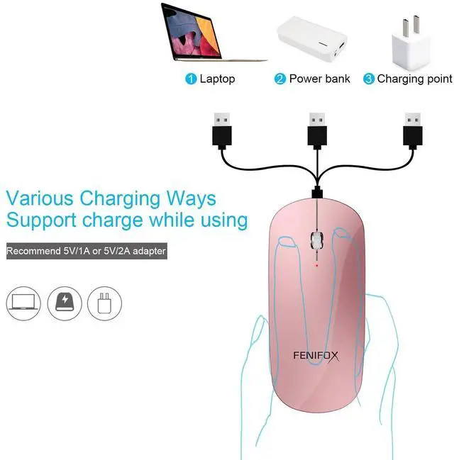 ^^ EASY to OPERATE: There just need three steps to connect devices that support bluetooth mouse. And more clear indicator. There has power signal light, pairing signal light, DPI signal light, low battery signal light and charging signal light. Finally, this mouse can be used normally when it charging.