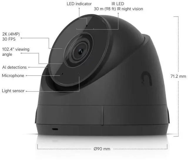 UniFi G5 Turret Ultra Black Edition Ubiquiti 2K HD PoE Security Camera, Wide Angle 102.4, 30 m Night Vision, AI Detection, Microphone, PoE Connector, Weather Resistant UVC-G5-TURRET-ULTRA
