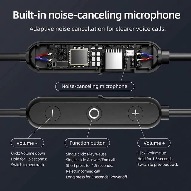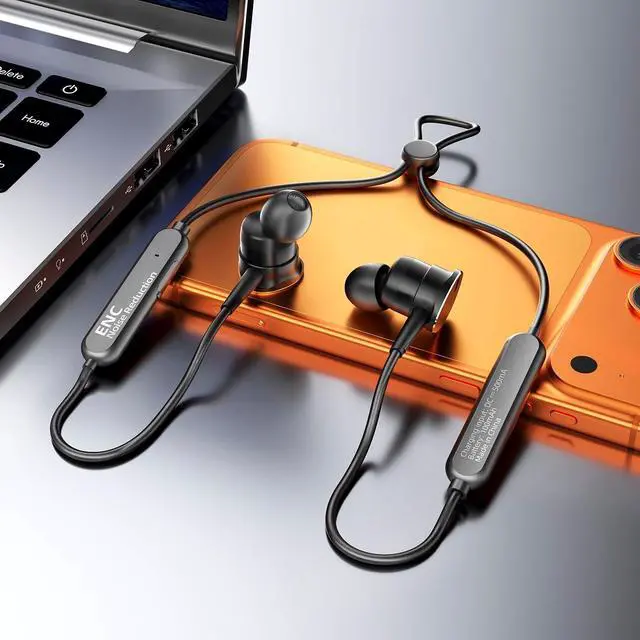 These neckband headphones combine convenience and performance for your active lifestyle. Featuring deep bass and rich stereo sound, they deliver an immersive audio experience whether you're working out, commuting, or taking calls. The magnetic earbuds snap together when not in use, making them easy to store around your neck without tangling. With ENC noise cancellation technology and a dedicated call noise canceling microphone, your voice comes through crystal clear even in noisy environments. The in-ear design provides excellent noise isolation, allowing you to focus on your music or conversations.