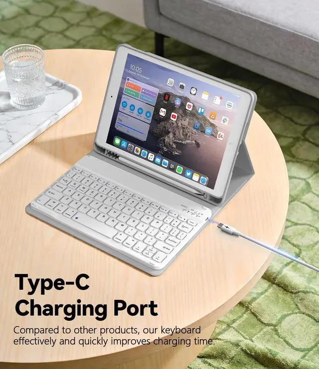 Keyboard (Number: A2430/A2270/A2428/A2429, 2020 Release); iPad 7th Generation Case with Keyboard A2197/A2198/A2200; 2019 Release); Please check the model number starting with "A" on the back of your tablet before purchasing. (NO pen and charger) ^^ Portable Multifunctional SZPSGC iPad 7th/8th/9th generation case with keyboard makes your iPad a stylish and portable work companion. It's not just a durable folio case but also comes with a magnetic, detachable, ultra-thin Bluetooth keyboard, turn your iPad into a laptop in one second, llowing you to operate with ease anytime, anywhere, and enjoy convenient office productivity ^^ Wireless Detachable Keyboard This iPad 7th/8th/9th generation case with Keyboard equipped with a magnetic, detachable, ultra-thin ( 6.5 mm), lightweight Bluetooth keyboard with a 10-meter range, it is perfect for school, office, travel, and business use. The larger keycap design, with a 30% increase in keycap area, offers a better typing experience, making your work easier ^^ Long-Lasting BatteryThe iPad 9th/8th/7th Generation Case with Keyboard featuring a high-efficiency battery, a single charge supports up to 180 hours of usage. The Type-C charging cable is included in the package, and it takes only 2-3 hours to fully charge, eliminating the hassle of frequent charging.