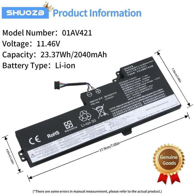 Packaging and Assistance: The package contains 1 * 01AV421 battery and 3 * screws of different sizes. We offer a 30-day return and exchange service. If you need assistance with replacing the battery of your laptop, please visit our product details page. To ensure your usage experience, our batteries are in sleep mode before reaching you. To fully activate the battery, you need to charge it once after replacing the battery. This will fully activate the battery.