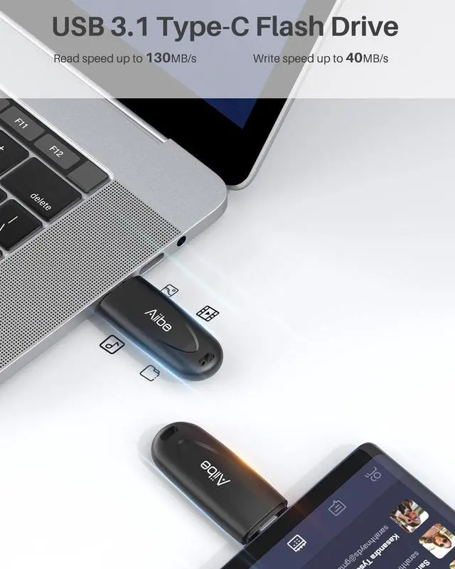 High Speed: Using the high speed 128gb usb c flash drive, you will experience up to 130MB/s reading and 40MB/s writing speed. This type-c flash drive lets you easily back up your photos, videos, music, documents, etc, greatly improving your efficiency ^^