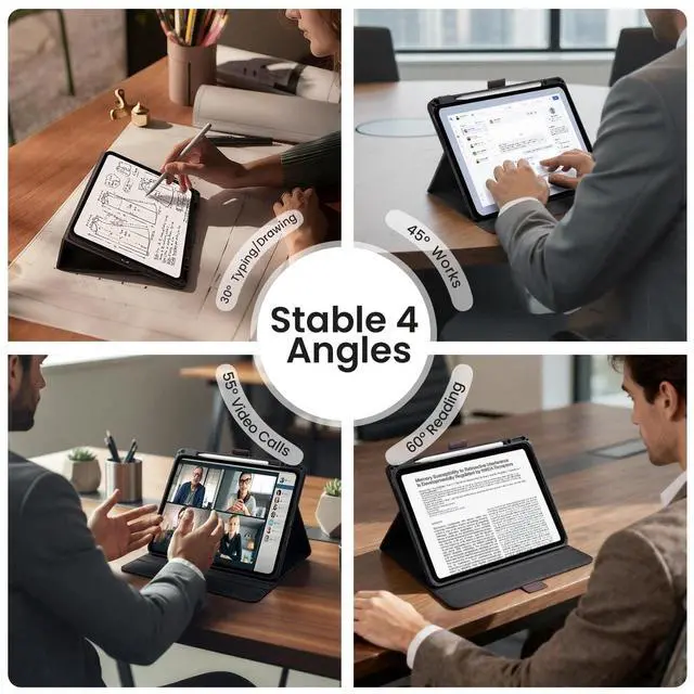 Standing Angles: The case provides 3 viewing angles and 1 typing angle, the ease of adjusting the stand to various angles has significantly improved viewing/typing/drawing experience and comfort. Special anti-slip microfiber and deepened grooves make every position very stable ^^