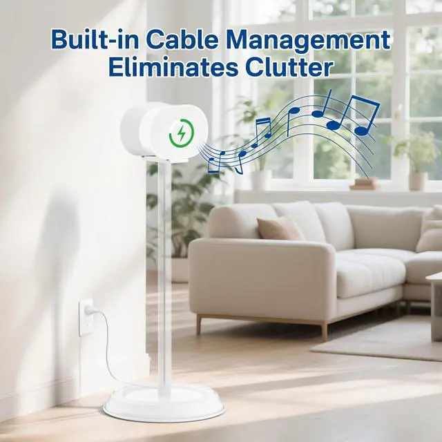 ^^ Cable Management Design: The stand include holes designed to manage the power cable which offers a clean and organized look for the sonos era 300 stand. Say goodbye to tangled cables and messy appearance, enhancing the aesthetic of your audio system.