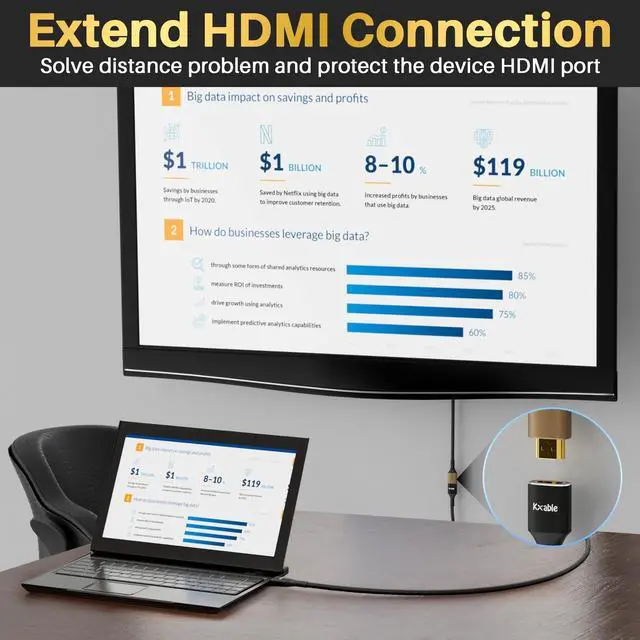 8K Ultra High Speed HDMI Extender Cable26AWG Stranded pure copper wires. Gold-Plated connectors on each end. Thin aluminum alloy shells with shinning edge. 8K@60Hz/4K@120Hz Refresh Rate and ResolutionSupports ultra high definition resolutions up to 8K (7680x4320) @ 60Hz, 4K (3840x2160) @120Hz, Also supports 1440P 2K@240Hz/165Hz, 1080P Full HD.