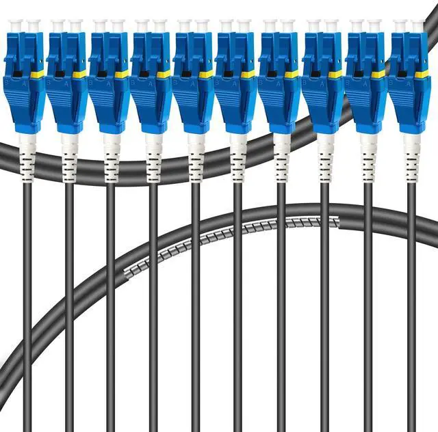 Bangun 10-Pack - 10m Uniboot LC to LC Armored Fiber Patch Cable, Singlemode 9/125um Fiber Optic Cable Jumper Optical Patch Cord, Duplex, (OS1/OS2 Compatible), LSZH Black