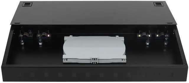 Thickness of Plate 1.0 mm; thickened and reinforced cold rolled sheet, sturdy and stableCorrosion resistant coating, long service life. ^^ Housing MaterialBlack shell, made of high quality metal materials. ^^ Large Space Fusion DiscEach tail fiber has a separate winding channel, effectively protecting the fiber. ^^ Snap on DesignAchieving quick installation and maintenanceNo need to tighten screws. ^^ Widely UsedData centers, premise installations, optical fiber LAN, WANtelecommunication and data processing networks CATV, instruments, communication system.