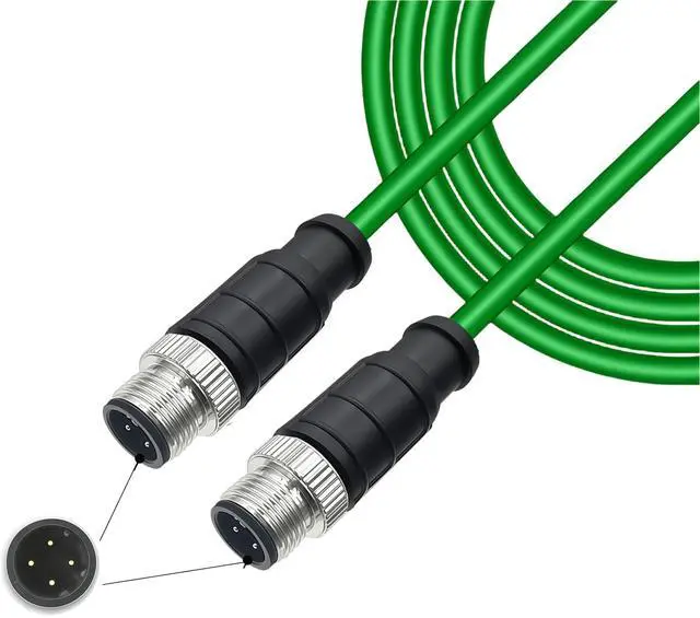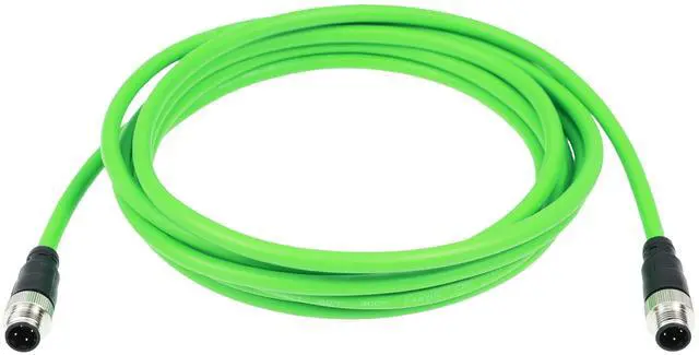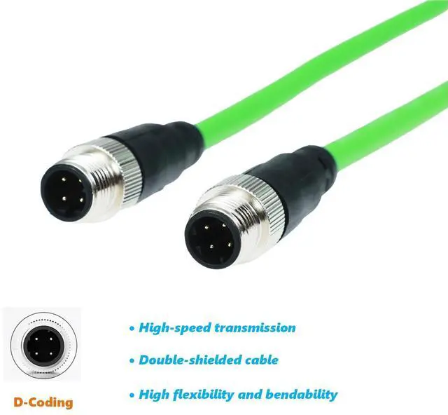 Male Cable: M12 D-coded 4-pin male to 4-pin male Ethernet cable for network, data, and power transmission. CAT5e standard with stable, high-speed performance for industrial automation and communication systems. ^^ Compatible with