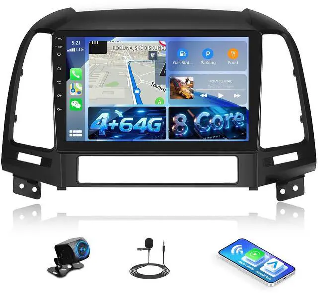 Android 15 Car Stereo for Hyundai Santa FeThe carplay car stereo fits Hyundai Santa Fe 2006 2007 2008 2009 2010 2011 2012. Android 15 system, 9'' Capacitive touch screen, screen size is 228mm*218mm*131mm, 8 core CPU, 4G RAM+64G ROM, running smoothly in colleges and universities. A variety of EQ sound effects scene selection. Capacitive touch screen, 1024*600 high resolution, Support 1080p video, will provide you the Excellent experience in the car ^^ Compatible with Wireless/Wired Carplay & Android Auto&Mirror LinkThis car stereo supports CarPlay/Android Auto function. Just connect via USB or Bluetooth, you can project the contents of your phone to the large screen of the host, and you can share your favorite 1080P videos, high-definition pictures, etc.