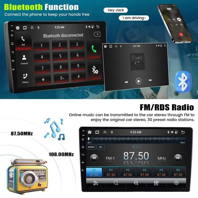 Upgrade dual system mirror link: IOS/Android mirror link ^^ GPS Navigation & WiFi Connect9 inch car stereo for Hyundai Santa Fe built-in WiFi module, support online/offline maps. Built-in Offline Map of North America. Online map also be supported, after connected to WiFi, you can use GPS Navigation at anywhere. This item allow install or delete android apps from Application Store, as the same as smart phone ^^ EQ Setting&DSPCar DSP tuning software, using DSP tuning technology, you can adjust the frequency, AE, 36-band equalization, and sound type selection on the app to make up for the lack of the original car speakers and obtain better lossless sound quality. Smart voice assistant, you can voice control it to make calls, control map navigation, send text messages, etc. It can better liberate your hands and achieve safe driving ^^ FM/RDS Radio Receiver &BluetoothBluetooth allows you effectively share music from mobile phone to the car stereo, answer phone call by hand free, calling and hang up phone with just one push of a button, daily driving easier and safer. Build in FM, automotive level chipset provides the best radio signal reception performance, lets enjoy the best FM station and and drive with the rhythm of the city ^^ Steering Wheel Control &AHD Rear View CameraThe car radio supports the car steering wheel to remote control the radio panel, including switching songs, switching channels, adjusting volume, answering calls, etc.
