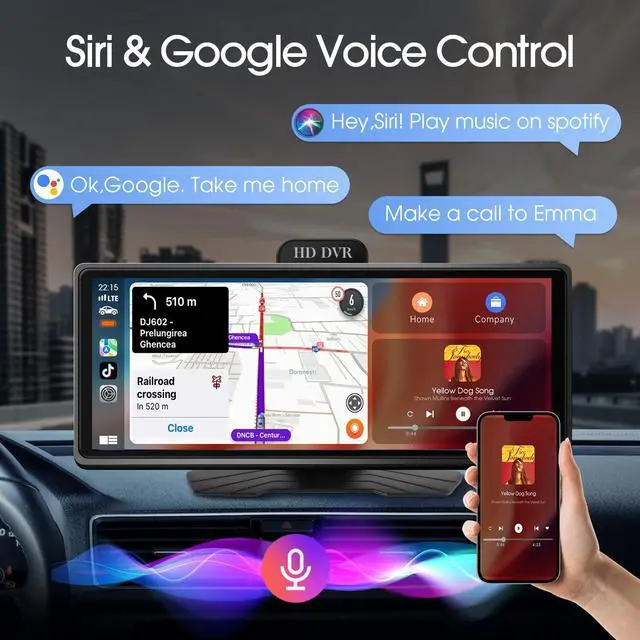 The 10.26 -inch HD IPS display offers a larger, clearer, and more immersive viewing experience. ^^ Screen Mirroring Function With support for Airplay and Android Cast, you can easily mirror your smartphones screen to the Carplay display. Whether youre on a road trip with family or friends, enjoy watching videos or playing games on the big screen in stunning HD. ^^ Easy Installation & After-sales Support Install in minutes with the included retractable suction cup mount or the adhesive rubber baseno car disassembly required. The adjustable mount allows for flexible positioning and a secure fit on your dashboard or windshield.