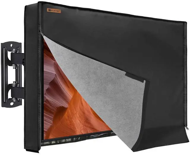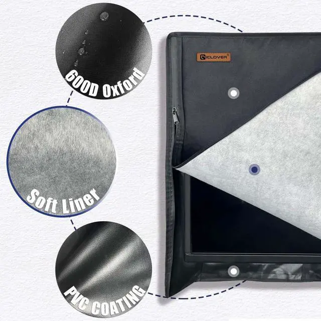 FRONT FLAP WITH SOFT INTERIOR: The roll up front flap of TV cover with soft scratch-resistant lining, ensuring that your TV screen remains scratch-free while the cover is in use. You can confidently place the cover on your television without worrying about any damage to its surface. The side & back of TV cover is constructed with waterproof PVC coating, providing effective protection against water and moisture. ^^ EASY ACCESS WITH SIDE ZIPPER DESIGN: With convenience zippers on both sides, you can effortlessly access your TV without the hassle of removing the entire cover. Simply pull open the zippers, roll up the front flap, and enjoy your favorite programs. The side zipper design not only offers ease of access and flatness but also provides superior waterproof protection compared to traditional hook-and-loop closures. ^^ FULL COVER WITH BOTTOM & USER-FRIENDLY DESIGN: TV cover is equipped with a bottom cover featuring a hook-and-loop design, creating a closed loop that provides 360 protection for your TV. Specially designed straps securely hold the rolled-up front flap when rolled up, preventing it from slipping or dropping. Two transparent corners keep the TV cover in place while you enjoy watching TV. ^^