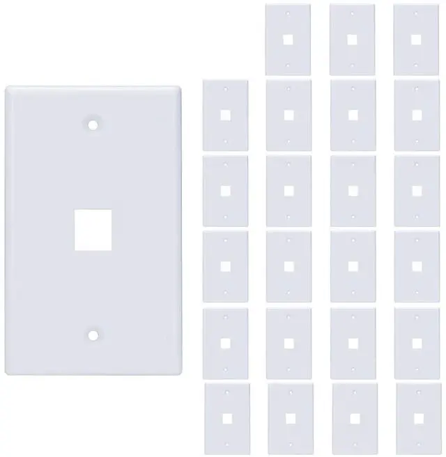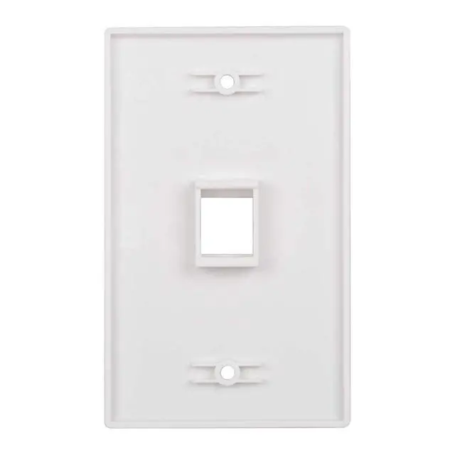 1 Port Keystone Wall Plate - 1 port wall plate for keystone jack creates an A/V cable patch location for a home theater media center or office conference room; Accepts many types of keystone jacks including RJ45 Cat 6 Ethernet, HDMI, RG6 coax, banana plug, you will get an clean media system, office media center and other applications. 1 gang keystone Jack wall plate single port fits a standard-sized receptacle with the included mounting screws; Fits a standard single gang wall plate opening Standard US size 1-port keystone wall plate, compatible with all US types of keystone / coupler / insert / modular, including (Cat3 / Cat5 / Cat5e / Cat6 / Cat6A / Cat7 / Cat8, HDMI, Coaxial, USB, Banana Jack, fiber optical RCA keystone jack or coupler).