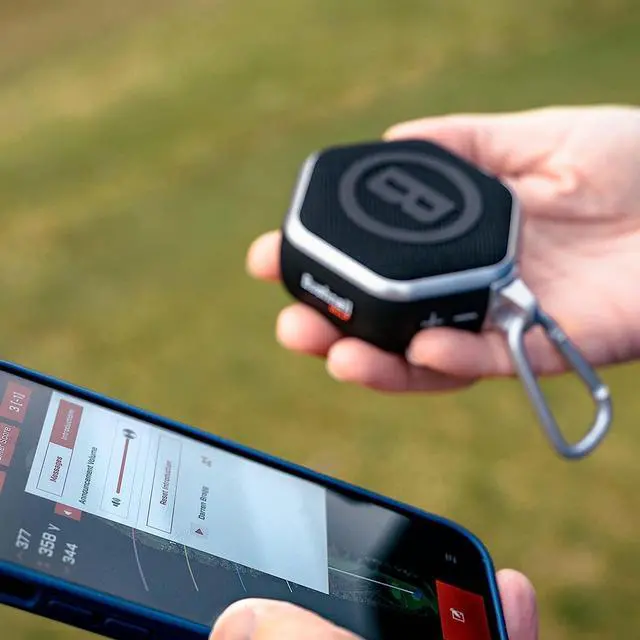 The Wingman Mini conveniently clips to your golf bag or mounts on the cart bar and offers golfers premium quality audio and the ability to receive audible GPS distances, 1st tee introductions and custom sound bites.