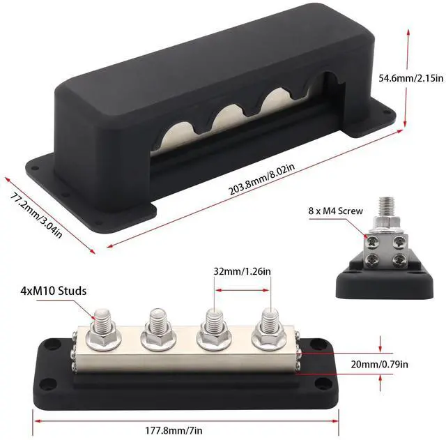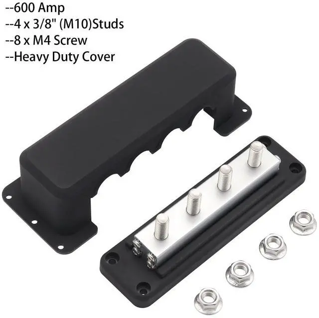 Features. Highest amperage rated bus bar (600A) with M10 TERMINAL STUDS. Glass Fiber reinforced Nylon base and enclosure ensuresensures great mechanical strength and durabilitySpecifications.