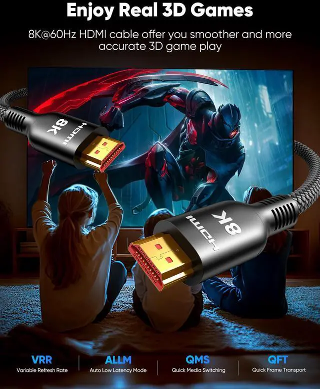 Home Entertainment: Experience breathtaking clarity with our 48Gbps HDMI 2.1 cable 165ft, delivering stunning 8K@60Hz, ultra-smooth 4K@120Hz, and competitive-grade 2K@240Hz resolution. Enjoy theater-quality sound with eARC (enhanced Audio Return Channel) and vivid, true-to-life colors with 48-bit Deep Color and 21:9 cinematic aspect ratio. Perfect for movie buffs and gamers who demand the absolute best in visual fidelity ^^ Gaming & Movie Perfection4K@120Hz with