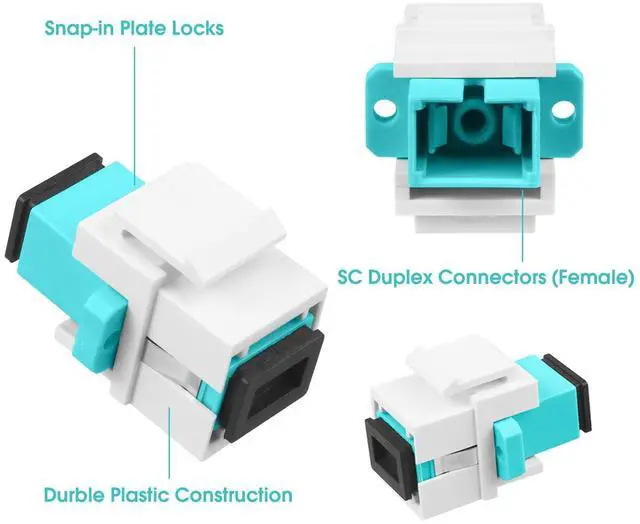 • fyboptwu - 20 pcs Fiber Optic Coupler SC OM3 Keystone Jack Coupler SC Simplex Multimode OM3 Adapter for Fiber Wall Plate (White)