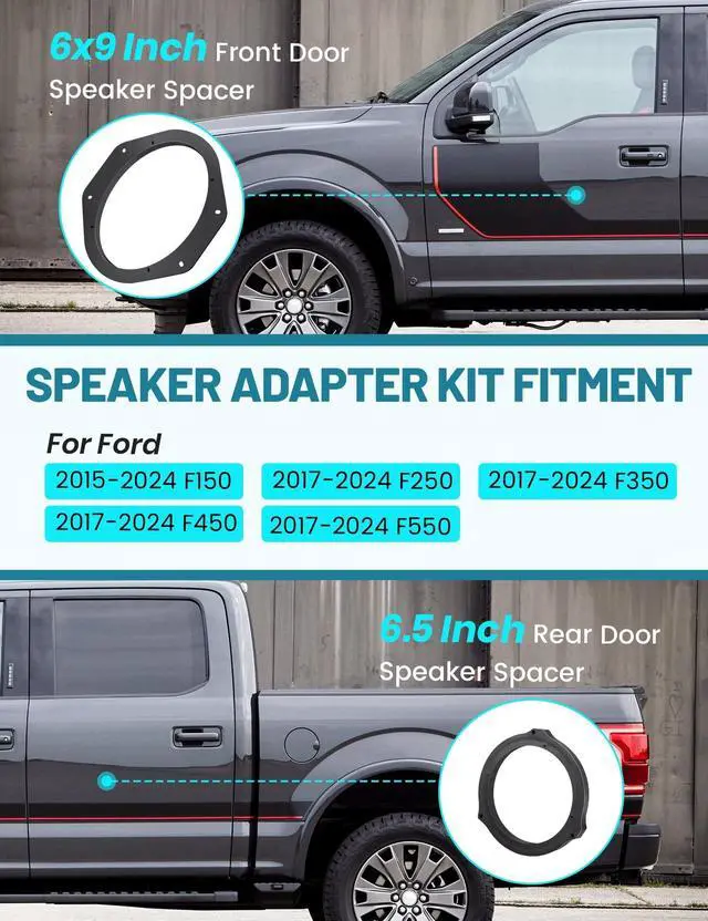 Speaker Install Kit: 1 Pair 6x9inch front speaker mount adapter and 1 pair 6.5 inch rear speaker bracket kit for Ford allows you to upgrade your factory/OE speakers to 6x9 inch and 6.5 inch aftermarket speakers ^^