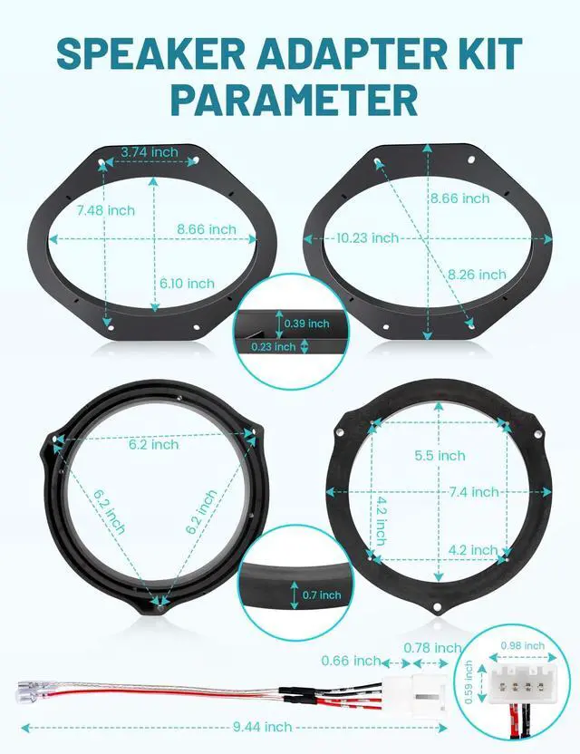 Note: This speaker adapter kit equipped with good craftsmanship structure for practicality, see measurements image to verify that your speakers will fit in these adapter