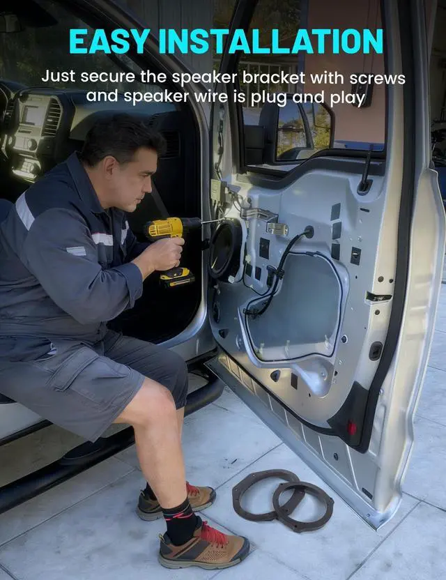 Easy Installation: F150 front door speaker install kit utilizes existing vehicle mounting points, and requires no cutting or drilling; F150 speaker wiring harness is directly plug and play; Provides the screws for installation ^^