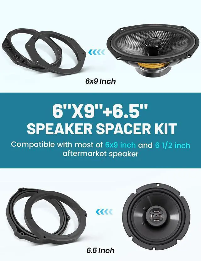 Vehicle Fitment: 6X9 front speaker spacers and 6.5 rear speaker adapter for