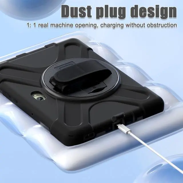 Features: 3 Layers Protection - Effectively keeps tablet away from damages of dropping, bumps, shocks and dust. 360 Rotatable foldable Kickstand - Built-in bracket is convenient for watching videos, conferences, construction and outdoor work. 360-degree Rotatable hook and loop hand strap for easy holding with one hand. Adjustable/Detachable Shoulder Strap - It is convenient for people to go out and carry it or hang it in any place (such as the back of front passenger seat) for viewing and learning. Precise cutouts ensure full access to all ports, buttons, cameras and speakers.