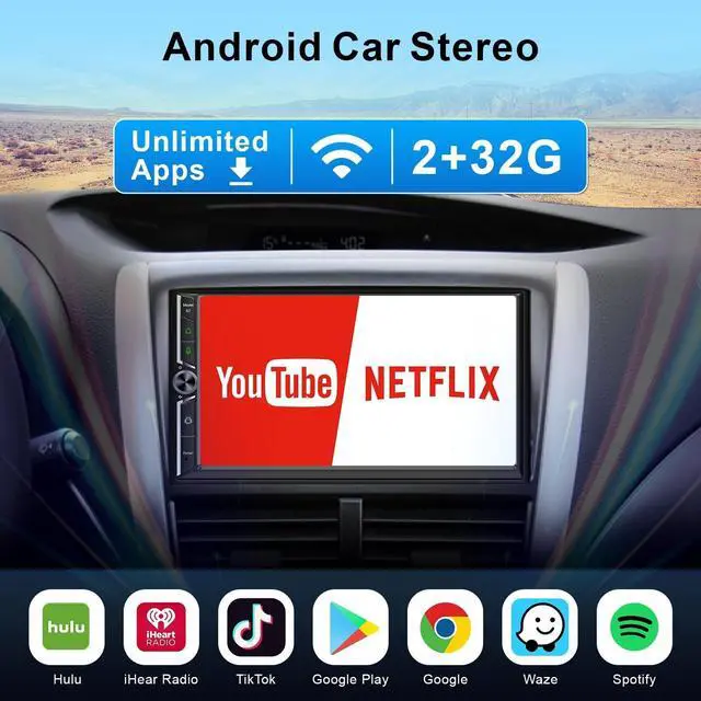 ^^ [Android Car Stereo]: Double din android auto equiped with 4*A7 CPU for smooth operation and faster response(2GB+32GB). Android radio double din allows you to install various apps, such as YouTube, Netflix, etc. Double din android radio has Built-in Wifi for Internet Access, Online/ Offline Map Navigation, Subwoofer output, DSP+15EQ for more entertainment in the car. ^^ [Upgrade 7 Inch QLED Touchscreen &
