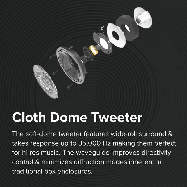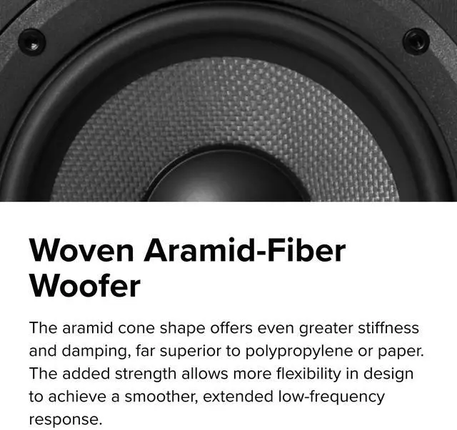 BOOKSHELF SPEAKERS - The Debut 2.0 B 6.2 raises the bar for bookshelf performance higher than ever before. With a black ash vinyl finish and newly developed tweeters, woofers & cabinets, these small-but-mighty speakers are unbelievably musical. ^^ CLOTH DOME TWEETER - The soft-dome tweeter features wide-roll surround & takes response up to 35, 000 Hz making them perfect for hi-res music. The waveguide improves directivity control & minimizes diffraction modes inherent in traditional box enclosures. ^^ WOVEN ARAMID-FIBER WOOFER - The aramid cone shape offers even greater stiffness and damping, far superior to polypropylene or paper.