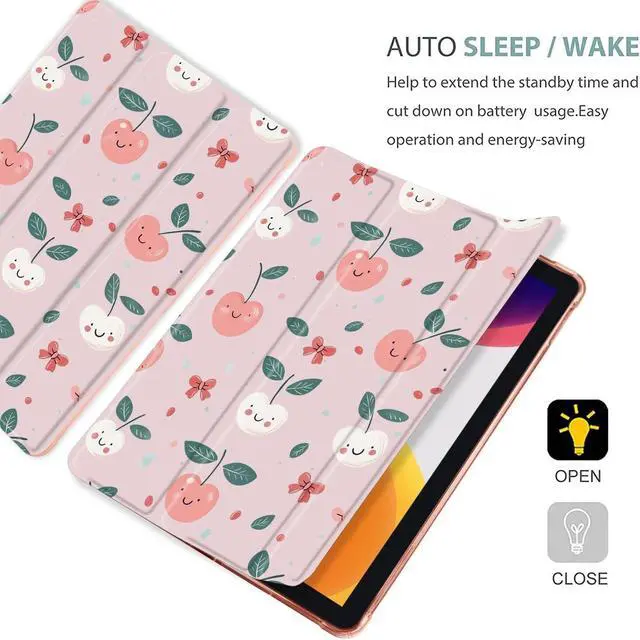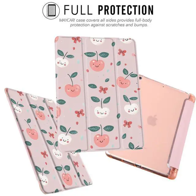 MAYCARI White Pink Apples Fashion Case for iPad 10.9 inch 2022 with Pencil Holder, Original Pattern iPad 10th Generation Soft TPU Back Protective Cover Shell, Auto Sleep/Wake Slim Shell - Pink