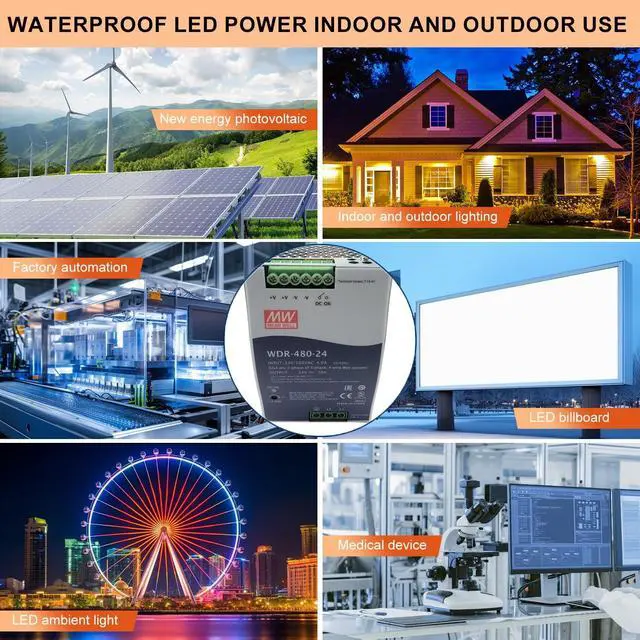 Unstable Environments: WDR-480-24 24V/20A DIN Rail Power Supply Ensure consistent power delivery to critical equipment in challenging locations with the WDR-480-24. This robust 480W power supply features an exceptionally wide input voltage range and high efficiency, making it ideal for remote areas, unstable grids, and off-grid systems. Key Features for